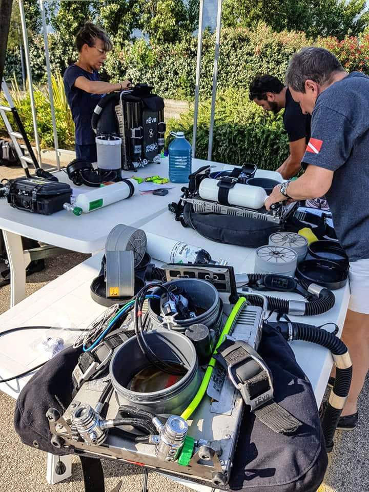 ricaricavano le bombole di ossigeno e diluente per il pomeriggio.