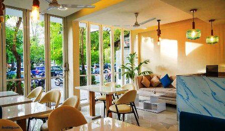Venerdì, appena arrivati, cerchiamo un posto dove dormire per una notte e scegliamo il "Moodhu Koe" un piccolissimo albergo che si trova a Hulhumale, ad appena un paio di chilometri dall’aeroporto internazionale. A causa del volo notturno e del fuso orario avanti di 4 ore qui è mattina, e nonostante siamo tutti piuttosto stanchi per il lungo viaggio e per non aver dormito, dopo aver lasciato il nostro bagaglio in albergo prendiamo un taxi e ci facciamo portare nel centro della città vecchia. |