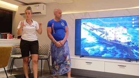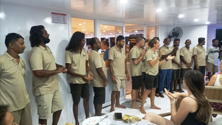 ![]() Il numerosissimo equipaggio della barca e del dhoni e a destra Martina la cruise manager |