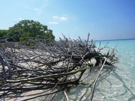 La seconda immersione del mattino è di nuovo a "Fish Head", ma Angela ed io, soddisfatti della bellissima immersione privata fatta al mattino presto, preferiamo rimanere in barca a rilassarci sul sundek in attesa della terza immersione della giornata. Dopo pranzo invece, insieme ad Andrea e Pamela, ci facciamo portare dal tender della "Princess Maani" su un’isoletta che al centro ha un po’ di vegetazione e qualche palma e dopo aver gironzolato per l’isola rimaniamo per un po’ sulla spiaggia a fare il bagno nell’acqua turchese. Questa piccola isoletta circondata dalla spiaggia di sabbia bianca è proprio come quelle viste tante volte nelle cartoline delle Maldive, un piccolo paradiso! |