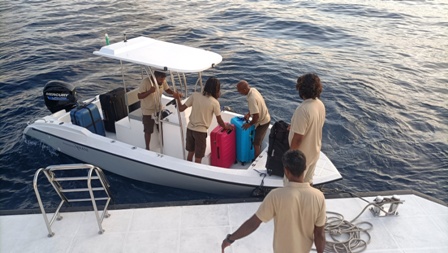 Sabato mattina si caricano i nostri bagagli sul tender per andare all'aeroporto |
