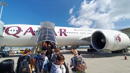 L'imbarco in aereo e poi in volo verso l'Italia
