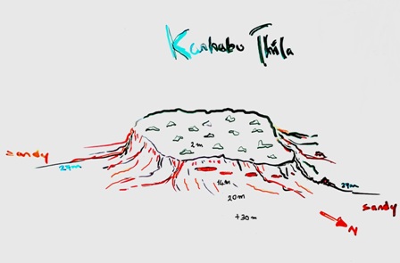 Lunedì 2 dicembre – Navigando per circa 18 mg raggiungiamo l’atollo di Kaafu Sud vicino all’isola di Guraidhoo dove c’è un villaggio di pescatori e un grande resort. Il punto d’immersione del mattino presto si chiama "Kandooma Thila" ed è nel mezzo del Biyadhoo Kandu ("kandu" significa piccolo canale), a nord dell'isola di Kandooma. Questa thila a forma di lacrima è lunga circa 300 metri e per molti anni è stata considerata tra i primi posti nel mondo per le immersioni con gli squali. La parte superiore della barriera è piena di corallo duro ancora intatto, mentre i lati della thila sono ricoperti di coralli molli. L’immersione è piuttosto impegnativa perché la zona è caratterizzata da forte corrente. Per questo motivo Angela, dopo il briefing di Beatrice, molto dettagliato ma spaventoso, decide di non scendere in acqua. Siamo solo in due con la guida: io e Irina, una signora russa piuttosto coriacea che non ha mai saltato un'immersione. Alle 6:15 ci tuffiamo nel blu in assetto negativo e nuotiamo verso la parte occidentale della thila per raggiungere il cappello della secca che è a circa 16 metri di profondità, cercando di non volare via verso est per non finire nel blu; poi scendiamo in profondità seguendo la parete piena di anfratti nei quali possiamo ripararci dalla corrente piuttosto forte. Scendiamo sul fondo intorno ai 35 metri aggrappandoci alla parete per non essere trascinati dalla corrente che è diventata molto forte. Lo scenario che si presenta ai nostri occhi è fantastico e c’è tanta vita. Incontriamo molte specie di pesci pelagici: piccoli squali pinna bianca, tonni, carangidi occhio grosso (Caranx sexfasciatus), squali grigi di barriera, murene giganti grigie, cernie rosse maculate e anche banchi di piccoli pesci di barriera. Terminiamo l’immersione lasciando la cigliata del cappello e sostiamo per un po’ nel blu in attesa di essere recuperati dal nostro dhoni. L’immersione è stata piuttosto impegnativa ed è durata appena mezz’ora perchè la forte corrente ci ha fatto consumare molto gas, ma è stata davvero bella e interessante. |