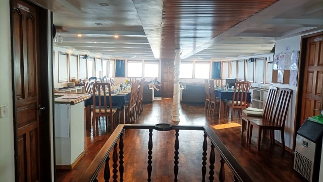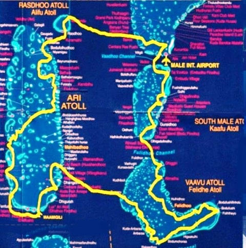 Ed ecco il racconto del viaggio.Partito da Roma Fiumicino con un aereo della Gulf Air (la compagnia di bandiera del Bahrein), dopo aver fatto scalo nel grandissimo aeroporto di Manama, sono arrivato a Malè, dove sono sbarcato nel nuovissimo aeroporto internazionale Velana, sull’isola di Hulhulé.I miei compagni di viaggio sono arrivati con diversi aerei provenienti da varie destinazioni e a poco a poco si è formato il nostro gruppo. Stanchi e accaldati per il lungo viaggio e per il cambio di fuso orario (4 ore di differenza), abbiamo atteso a lungo sul molo davanti all’aeroporto che venisse a prenderci il dhoni che doveva portarci alla nostra barca. Poi, finalmente, è arrivato il dhoni che ha portato noi e i nostri bagagli fino alla nostra barca che era alla fonda nel porto. La barca era la “Maldivian Dream”, un’imbarcazione lunga 30 metri e larga 11 piuttosto vecchiotta (anno di costruzione 2005), ma ristrutturata nel 2011. In ogni caso la barca si è dimostrata piuttosto comoda e dotata di tutti i servizi necessari, compresa una bella vasca da idromassaggio sul ponte superiore dotato di lettini prendisole. Il comandante e l’equipaggio si sono dimostrati sempre molto efficienti e ci hanno fatto sentire a nostro agio.