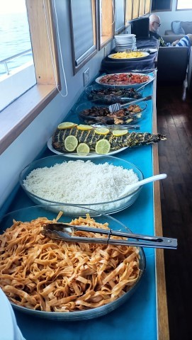 La sera il piccolo motoscafo tender della barca ci porta in due riprese sull'isola di Dhangethi, dove facciamo una cena barbecue. L'efficientissimo equipaggio ha portato a terra tutto il necessario e ha preparato la brace per una bella grigliata. Quando arriviamo troviamo una bella tavola apparecchiata sulla spiaggia e un mucchio di cibo. Per fortuna non c’è solo il pollo! Ci sono salsicce, spiedini di carne e di pesce, pannocchie di mais lessato, braciole di carne... e naturalmente anche pollo, che credo che non vorrò più mangiare per un bel pezzo. L'isola di Dhangethi si trova a 55 miglia a sud-ovest della capitale Malè ed è la terza isola popolata più grande dell'atollo di Alif Dhaal, nell’atollo di Ari Sud. L’isola misura meno di 1 km in lunghezza e appena 300 metri in larghezza e ospita circa 1200 abitanti. È una “local island”, cioè un’isola abitata da maldiviani, ma ci sono anche piccole guesthouse e bed & breakfast per i turisti. Sull’isola ci sono alcuni ristoranti, qualche negozietto e un piccolo porto da cui partono le escursioni giornaliere. Il villaggio ha conservato però la sua anima originaria: stradine di sabbia bianca, la moschea, una scuola, bambini che giocano scalzi. Non ci sono auto, solo biciclette, qualche motorino e carretti elettrici: la vita scorre lenta, scandita dal suono delle onde e dal canto del muezzin al tramonto. |