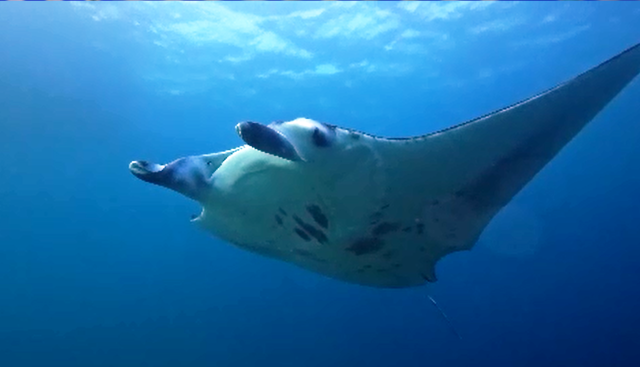 Venerdì 20 febbraio ore 7:15 – RANGALI MADIVENU (Ari South Atoll) ci immergiamo su una secca poco distante dall’isola di Rangali e nuotiamo per circa un’ora sopra il cappello, nella vana ricerca del mitico squalo balena… che ovviamente non si fa vedere. La sommità della secca è piuttosto spoglia: è ricoperta di coralli tavola, ma priva di colori. L’immersione è abbastanza noiosa, fino a quando non appaiono un paio di squali grigi e poi, per fortuna due grosse mante che volteggiano eleganti sopra le nostre teste. La visibilità è piuttosto scarsa a causa della grande presenza di plancton. Vediamo un pesce Napoleone, una murena nera, e una bella nuvola gialla di pesci azzannatori striati. Ci sono anche rossi pesci soldato, pesci farfalla bandiera, pesci chirurgo, pesci ago… tanti pescetti di barriera, ma tutto sommato noiosa. Decido già di saltare la prossima immersione perché è molto simile a questa.