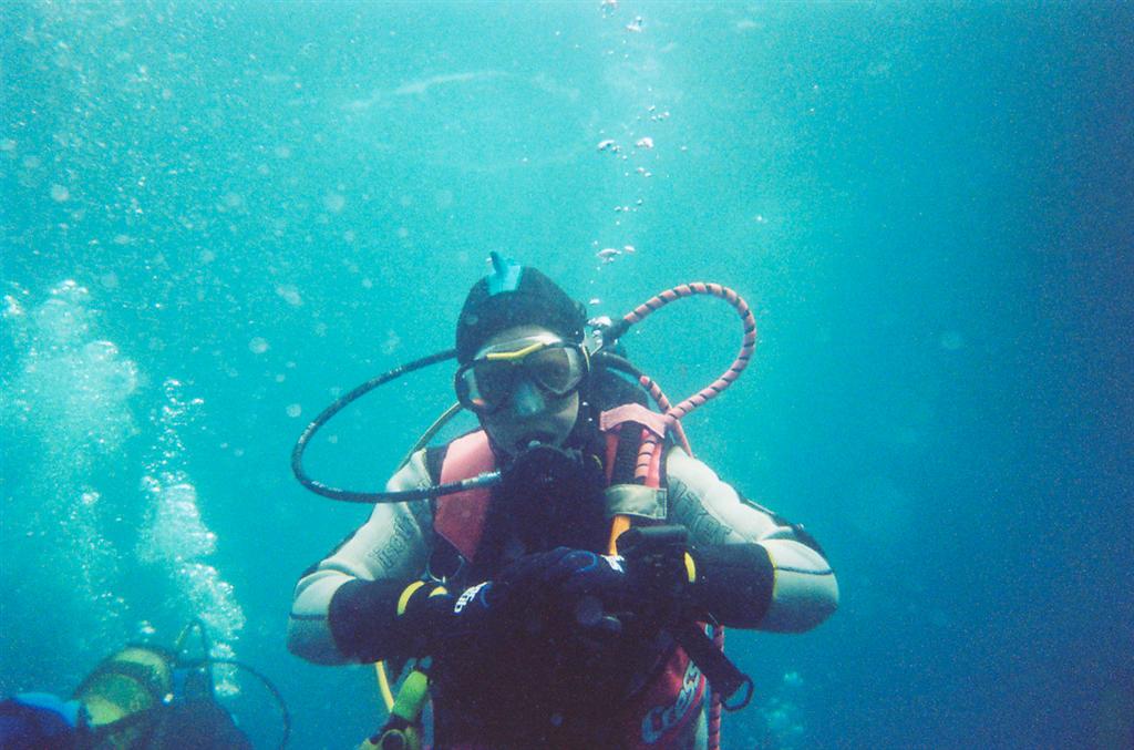 Nel frattempo io e mia moglie "scopriamo" la subacquea e ci addestriamo in piscina per ottenere il nostro primo brevetto. Chiara ogni tanto si tuffa nella vasca con noi e segue i nostri esercizi sul fondo. Scende in apnea fino sul fondo dove ci esercitiamo, arriva nella buca sotto al trampolino a 5 metri di profondità e si attacca ad uno dei nostri erogatori per restare sott’acqua con noi che facciamo gli esercizi subacquei. Il nostro istruttore la guarda ammirato, colpito dalla sua straordinaria acquaticità. A quel tempo Chiara è al culmine della sua forma fisica, perché si allena costantemente nuotando tre o quattro volte la settimana, perciò il nostro istruttore decide che quella bambina "deve" prendere il brevetto sub. Così Chiara inizia il corso OWD, quando non ha ancora compiuto dodici anni e la cosa più difficile per lei è la parte teorica: capire le nozioni di fisica e di fisiologia necessarie per conseguire il brevetto è una cosa ardua alla sua età e ancora di più lo è cimentarsi nei calcoli con le tabelle d’immersione. Ma lei s’impegna tantissimo e alla fine supera brillantemente l’esame teorico. In acqua invece, non ha alcun problema: lei è proprio un pesce! Esegue i vari esercizi con estrema naturalezza, tutto le viene istintivo e naturale, senza alcun problema. Guarda l’istruttore eseguire l’esercizio dimostrativo un paio di volte e poi lo ripete con una naturalezza degna di un sommozzatore provetto. Una volta superato l’esame per il suo brevetto OWD, dall’estate del 2000 Angela ed io abbiamo una nuova fantastica compagna d’immersione: nostra figlia Chiara... la sirenetta.