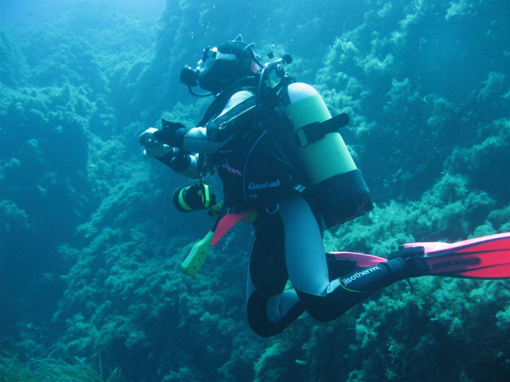 Nell’estate del 2001 ero in vacanza con la mia famiglia in un villaggio vicino a Palinuro e ogni giorno con il gommone andavamo a immergerci nei bellissimi fondali intorno al promontorio. Una mattina partimmo con il gommone carico di bombole e di viveri alla volta di Capo Spartivento, per fare una bella "full-day". Facemmo la prima immersione lungo la parete sotto la punta, e lì Chiara visse le sue prime emozioni "forti". Prima la discesa fino a quasi 50 metri di profondità e la scoperta di una parete tutta ricoperta di corallo rosso e poi l’incontro con una murena enorme che uscì dalla sua tana proprio mentre Chiara le passava accanto, facendola sobbalzare per la paura. Fu anche la prima volta che Chiara fece una decompressione "impegnativa": 5 minuti trascorsi in assetto perfetto a 3 metri di profondità. Davvero parecchio per una ragazzina poco più che tredicenne! Dopo una sosta per pranzare e una seconda immersione poco impegnativa nel tunnel che attraversa lo Scoglio del Coniglio, ci portammo nella piccola baia che si trova sul versante meridionale di Punta Iacco. Qui facemmo la nostra terza immersione della giornata, in una piccola grotta vicino alla Grotta delle Corvine. Angela ed io eravamo assolutamente tranquilli per nostra figlia. Nei tuffi fatti nei giorni precedenti, sia in parete sia in grotta, Chiara aveva dimostrato una tale tranquillità e sicurezza da non farci minimamente preoccupare. Scendemmo fino a 20 metri di profondità e ci infilammo nel vasto ingresso della grotta di forma triangolare. Poi salimmo su per un largo sifone che emerge in una piccola bolla aerea, per ammirare le bellissime concrezioni che ornano la volta della grotta. Di lì ci infilammo in fila indiana in uno stretto cunicolo discendente che, dopo un percorso abbastanza tortuoso, sbuca nel blu a soli 5 metri di profondità. Davvero una bella grotta! Mentre eravamo all’interno della grotta, dopo essere ridiscesi dalla bolla aerea, Chiara ebbe qualche problema al primo stadio dei suoi erogatori in configurazione octopus. In rapida successione, prima uno e poi l’altro erogatore andarono in erogazione continua. Nonostante lei premesse più volte sul pulsante di spurgo dei due secondi stadi, il flusso d’aria che usciva violentemente dalla bombola non si arrestava. Segnalato il problema ad Angela, Chiara si fermò respirando lateralmente dall’erogatore che le forniva molta più aria del necessario e attese il mio intervento. La sua bombola si sarebbe svuotata in pochissimo tempo. Avendo solamente un octopus, l’unica cosa da fare era chiudere il rubinetto della bombola e dare a mia figlia una delle nostre fonti d’aria alternativa. Così feci. Chiusi il rubinetto e Angela passò a Chiara il suo secondo erogatore. Condizionati dalla lunghezza di appena 120 centimetri della frusta dell’erogatore di backup di Angela e dalle dimensioni anguste del cunicolo in cui ci trovavamo, le mie donne s’infilarono nello stretto tunnel che sbucava in mare aperto nuotando una dietro l’altra e tutti e tre insieme arrivammo all’uscita, dove ci aspettava la nostra guida. Solo quando fummo usciti la guida si accorse che Chiara e Angela respiravano in coppia e credette che mia figlia avesse finito la sua aria. Rassicurata la guida, terminammo tranquillamente la nostra immersione nuotando lungo la parete fino al gommone ancorato poco distante e solo una volta saliti a bordo potemmo spiegare esattamente quello che era successo "là dentro". Più tardi la guida ci disse di non aver mai visto una ragazzina affrontare con una simile tranquillità una situazione come quella all’interno di una grotta. A distanza di tanti anni ne sono più che convinto anch’io! |