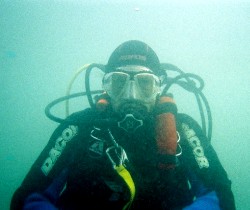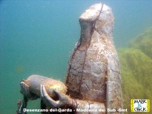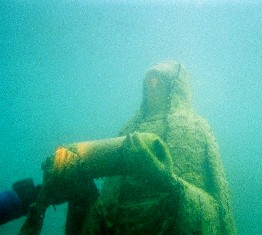 La mia inquietudine della vigilia si scioglie man mano che scendo e mi compenetro sempre di più in questo nuovo elemento liquido che mi avvolge… Provo quella sensazione di benessere interiore che mi accompagna sempre ogni volta che mi immergo. Cerco di cogliere le sensazioni che provo in questo nuovo tipo di immersione e la cosa che mi colpisce di più nell’ambiente circostante è l’assenza di colori vivaci. La tavolozza di colori sgargianti alla quale sono abituato nei mari in cui di solito m'immergo qui è tutta sfumata, quasi monocromatica, con una prevalenza di verdastro e giallognolo e se guardo verso la superficie tutto diviene color verde smeraldo. Nessuna tonalità di azzurro. Comunque, questo spettacolo irreale è molto bello. L’atmosfera è magica. Anche il silenzio quaggiù è irreale. Non sento il “rumore” del mare, ma solo il mio respiro e le lame di luce delle nostre potenti torce che penetrano nell’oscurità più profonda riescono appena a scalfirla. Angela mi sta accanto e sorride attraverso i vetri della maschera, mentre Percy e Mark nuotano un po’ più avanti di noi. Ci facciamo spesso dei grandi segni di OK e l’immersione procede per il meglio. Sento solo un po’ di freddo. La mia semistagna da 7 millimetri mi protegge a malapena dai 6 gradi di temperatura che troviamo a 40 metri di profondità e ho le mani un po’ intirizzite, ma non m’importa. Riesco persino a vedere del pesce: tre grosse bottatrici che nuotano proiettando la loro ombra sulla parete ed un’anguilla di lago dal ventre argenteo. Il tempo purtroppo vola (...in questo il lago è identico al mare!) ed è già arrivato il momento di ritornare su. Risaliamo a quote più tranquille, dove troviamo il relitto del "Rio Bravo", un piccolo motoscafo che si trova a 18 metri di profondità e un paio di statue che rappresentano Bacco e Venere. Arrivati ai 3 metri, facciamo la nostra breve sosta di sicurezza e, poco dopo, siamo di nuovo tutti in barca sulla via del ritorno. Sono raggiante di felicità! Mi sento come un bambino felice appena sceso da una giostra, ma… ho voglia di ritornare ancora sull’ottovolante! |
