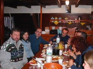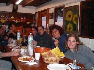 Angela ed io arriviamo al porto nuovo di Porto Santo Stefano verso le sette di sera del 3 novembre, scarichiamo il nostro bagaglio e saliamo a bordo della “Marea”, una bella barca di legno di 24 metri, ricavata da un peschereccio d'altura e attrezzata per le crociere sub. A bordo ci accoglie il comandante Gianni, un fiorentino che, alcuni anni fa, è riuscito a fare quello che io ho più volte sognato: si è lasciato tutto alle spalle e ha deciso di cambiare vita, vivendo su una barca. Scelta coraggiosa, ma sicuramente azzeccata! Fa molto freddo, ci sono appena 4 gradi di temperatura e ci rifugiamo subito all’interno dell’ampio salone, che con il calore del legno, sembra riscaldarci un po’. All’interno troviamo le prime persone del gruppo di Fondali.it, che sono arrivate poco prima di noi ed hanno già un bicchiere di vino in mano. Ce ne porgono subito uno, mentre cominciano le presentazioni. Tu sei…? Ah, sì, adesso ho capito! I vari nicknames cominciano a … prendere forma e così è per un pezzo, a mano a mano che le persone arrivano alla spicciolata, provenendo dalle località più diverse. Palermo, Cosenza, Napoli, Salerno, Bari, Roma, Ancona, Siena, Livorno, Mantova, Milano… c’è tutta l’Italia rappresentata. Ventidue persone che non si conoscono, se non attraverso la rete, ma che dopo qualche bicchiere di vino si sentono già amici! La sera c'è una grande cena di pesce, preparata da Gianni e Gennaro, una bellissima crostata fatta da Michela e poi restiamo a chiacchierare fino a tarda ora, pregustando quello che ci aspetta all’indomani. A cena riuniti attorno al grande tavolo nel quadrato della "Marea". |