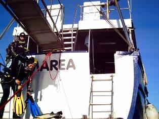 Pronti a tuffarsi dalla poppa della "Marea". |