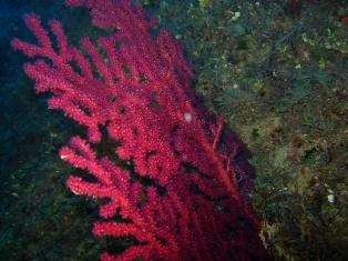 All’interno di una piccola nicchia una grossa musdea dal colore bruno chiaro nuota impaurita dalla potente luce delle nostre lampade e non sa se uscire dal buco o appiattirvisi dentro, sperando che la lasciamo tranquilla. Un paio di cernie brune si nascondono sotto ai massi del fondo, mentre noi ci nuotiamo sopra. Arrivati a 43 metri di profondità cominciamo una lenta risalita e smaltiamo i pochi minuti di deco accumulati, durante il percorso di ritorno. Sui rami della vegetazione che ricopre la parete si vedono tantissimi piccoli nudibranchi dai colori delicati, che dondolano spinti dalla corrente: moltissime Flabellline affinis di color porpora, alcuni Dondice banyulensis con le papille dorsali dal caratteristico colore arancione e la bellissima Cratena peregrina che ha le papille con la punta violacea. |
