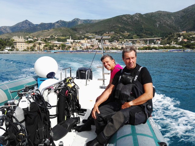 Arenzano, 25-28 luglio 2017 - Ed eccomi di nuovo qui finalmente… nove anni dopo. Avevo promesso ad Angela che come regalo per il suo compleanno saremmo venuti tre giorni ad Arenzano a ritrovare la "Grande Signora". La strada da casa è lunga, e mentre guido verso la nostra destinazione mille pensieri mi passano per la mente… e non sono tutti positivi. Rivedo mentalmente l’immersione, i passaggi sui vari ponti della nave, le penetrazioni all’interno… Il ricordo della mia ultima immersione sulla "Haven" è ancora ben stampato nella mia mente, assieme ai fantasmi delle mie paure. Devo scacciarli via. Domani saremo di nuovo in acqua! |