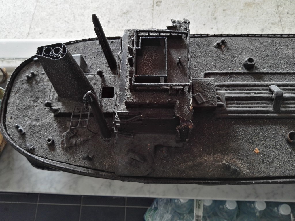 ![]() Frammenti del relitto: officina, bombole, oblò, morsa.... |