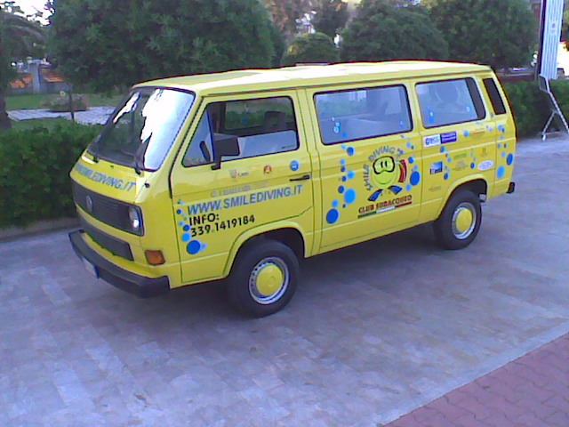 Il mitico pulmino giallo... un pò il simbolo del giovane e dinamico SMILE DIVING di Porto Recanati. |