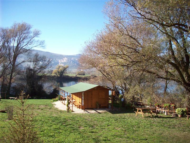 Sotto lo chalet che ospita il diving Atlantide Sub, sulle sponde del lago di Capo d'Acqua. |