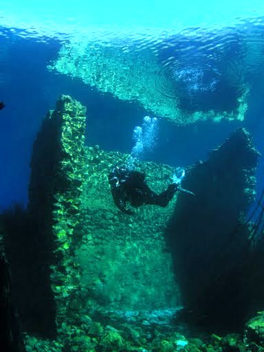 A sinistra Angela & Marcello Sotto: Marcello nuota tra le rovine.... |