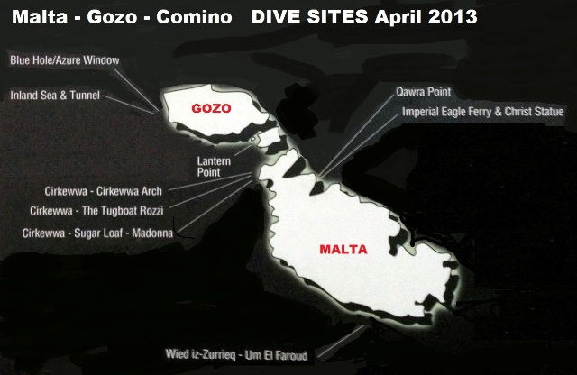 Giovedì 11 Aprile 2013 La nostra prima giornata maltese prevede due immersioni con il gommone nella vicina isola di Comino: la prima a “Lantern Point” in aria e la seconda sul relitto del pattugliatore “P31” in EAN36.