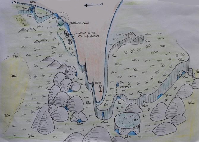 mentre sugli enormi massi esterni che scendono in profondità c’erano
