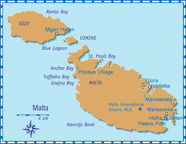 ![]() Partiti da Roma Fiumicino con un comodo volo di linea dell’Air Malta, in poco più di un’ora siamo atterrati nel moderno aeroporto internazionale di La Valletta, dove abbiamo trovato il pulmino che ha trasportato noi e tutta la nostra attrezzatura al “Sea Shell Dive Cove” di Mellieah Bay, nella parte nord ovest dell’isola di Malta. |