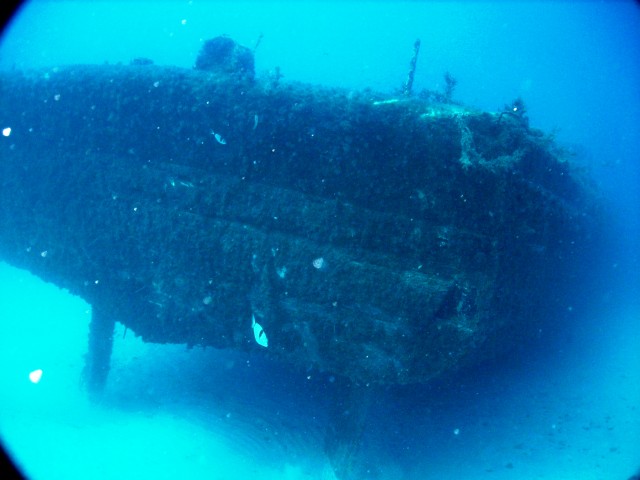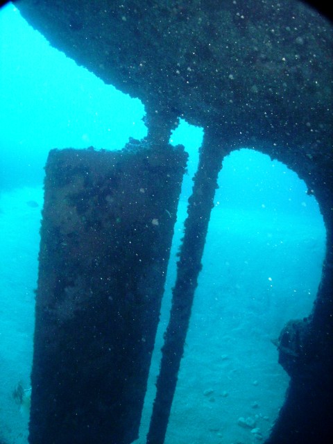 ![]() Sopra: la petroliera libanese "Um el Faroud" prima dell'affondamento.. Sotto: alcune belle immagini riprese da Sandro Costa sul relitto (a sinistra si vede la grande elica e il timone).