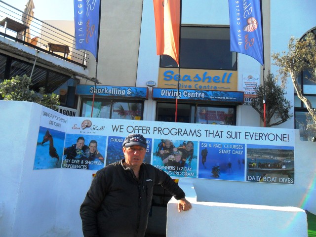 Martedì 16 Aprile 2013 Per la sesta giornata extra pacchetto di 10 immersioni acquistato dall'Italia, abbiamo deciso di concludere in bellezza e abbiamo previsto due tuffi sul relitto della petroliera "Um el Faroud": la prima immersione la faremo in aria con la stage di EAN50 per la deco e la seconda in EAN 30. Siccome il volo di ritorno in Italia è al pomeriggio tardi di mercoledì, siamo riusciti a infilare anche queste immersioni extra e ne è valsa davvero la pena perché questo grande relitto è veramente molto bello. L’ingresso in acqua qui è abbastanza agevole, con una scalinata lunga e ripida che porta fino al livello del mare. La scalinata non è scivolosa e ha degli ottimi corrimani al centro, e anche la nuotata di 150 metri per raggiungere il relitto non è troppo impegnativa, anche se ci fa sprecare parecchio gas e limita il nostro tempo d'immersione sul relitto. La prima immersione l’abbiamo pianificata più fonda fino all’elica e al timone con un passaggio all'interno, mentre la seconda (che però io non ho fatto, preferendo... pranzare assieme a Gianni) è dedicata alle penetrazioni dei vari ponti sulla poppa della nave. |
