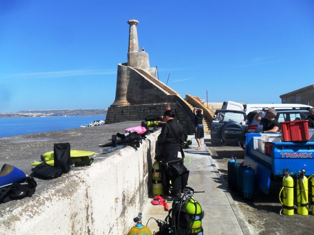 Il piazzale di Cirkewwa Point è tutto per i subacquei! |