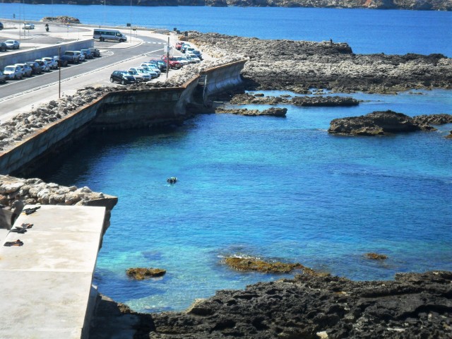 Lunedì 15 Aprile 2013 Il programma della quinta giornata prevede una gita a Gozo prendendo il traghetto a Cirkewwa e le due più famose immersioni dell’isola: il “Blue Hole” con l’Azure Window in aria stage di EAN50 eil cosiddetto “Inland Sea” in EAN32. Per raggiungere l’isola con il traghetto dobbiamo svegliarci presto e partire dal diving con il truck un’ora prima del solito. Verso le 9.00 siamo al parcheggio vicino alla famosa “Azure Window” (quell’arco sul mare che si vede in tutte le fotografie di Malta) e ci rendiamo conto che da lì al mare ci sono circa duecento metri di “passeggiata” sulle rocce sconnesse e sulle scalette di acciaio che conducono al laghetto del “Blue Hole”, con un bel dislivello da superare… Con una certa fatica e facendo più viaggi portiamo in riva al mare le nostre bombole e la nostra attrezzatura e finalmente alle 9:40 saltiamo in acqua per quella che sarà l’immersione più bella e impegnativa della nostra settimana maltese.