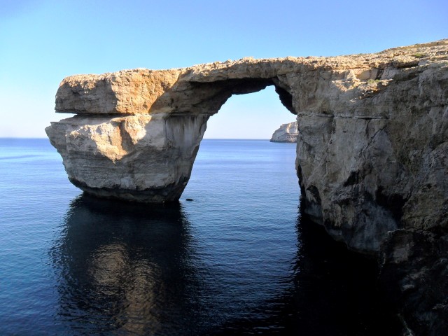 Sotto: la famosa Azure Window nel'isola di Gozo. |