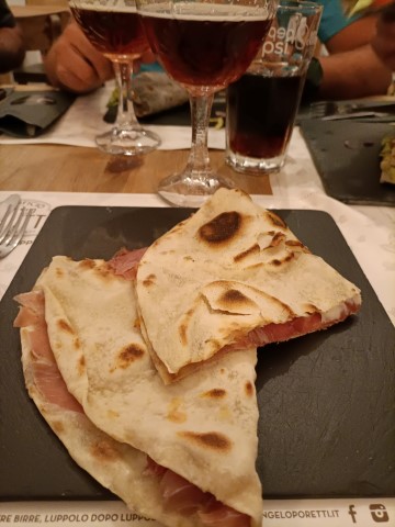 Ovviamente dopo l'immersione si cena con gli amici. Una piadina farcita e una birra sono meglio di niente. |