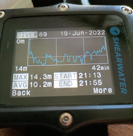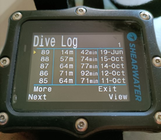 Dopo i tuffi tra i 60 e i 70 metri di ottobre in Sardegna il Dive Log del mio computer registra il tuffo a 14 metri su relitto della "Nicole"
