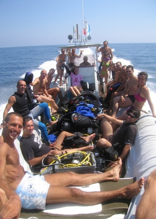 Arrivo al diving “Dive Planet” di Rimini poco dopo le otto del mattino assieme ad Angela. La sede, che si trova a pochi metri dall’imbarco alla sinistra del porto canale, a fianco della nuova darsena "Marina di Rimini", è veramente molto bella: circa 400 mq. con un grande e fornito negozio di attrezzatura subacquea, un centro ricarica aria/nitrox con ben tre compressori da 16.000 lt./ora e un attrezzata officina per le riparazioni. C’è persino una piccola piscina nella quale si svolgono i corsi sub! Il primo impatto è assolutamente positivo e, pur nella frenesia dovuta all’arrivo contemporaneo di una ventina di subacquei, mi rendo conto di essere in presenza di una macchina organizzativa collaudata e perfetta. Lascio i miei dati all’efficientissima e simpatica Isa che mi accoglie con un sorriso al desk della reception e, una volta sbrigate le varie formalità burocratiche (scarico responsabilità, visione dei brevetti, ecc.), comincio a preparare la mia attrezzatura all’esterno del diving. Analizzo il contenuto della mia bombola di nitrox, compilo il registro di carico del nitrox e, dopo aver assemblato il mio gruppo, non debbo fare altro che ascoltare l’accurato briefing dell’immersione che andremo a fare, mentre lo staff del diving si occupa di trasportare tutta la mia attrezzatura fino al gommone e di caricarla a bordo. Poco dopo, fatti solo pochi passi con la muta indossata a metà, arriviamo al gommone e ci imbarchiamo. Più che un gommone il “Chimaera 2” è una bestia: lungo 10 mt., largo 3,60 mt., con tubolari da 70 cm., spinto da due potentissimi motori Yamaha da 250 cv., 4 tempi, con il gambo extralungo ed eliche controrotanti ravvicinate, è in grado di raggiungere la pazzesca velocità di 50 nodi! Staremo a vedere… |