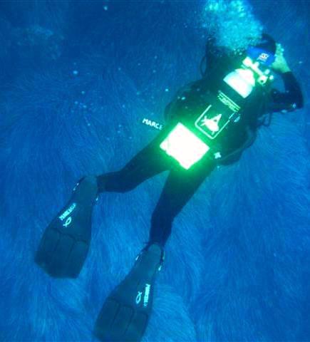 GROTTA AZZURRA – PARETE DESTRA 11 settembre 2008 ore 10.08 prof. max 24 m. temp. 20 °C tempo 51 min. Torniamo ancora una volta in Grotta azzurra, questa volta guidati da Nando e ci dedichiamo all’attenta osservazione di tutta la parete destra, facendo un percorso di andata e ritorno solo su questo lato. E’ con noi Stefano, biologo marino dell’Acquario di Genova, che ci mostra gli aspetti più significativi della vita che si svolge sulla parete della grotta… cose che gli occhi meno attenti non sanno vedere. All’uscita della grotta un grossissimo polpo nella sua tana, intento a ventilare le uova deposte.