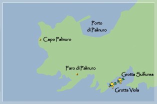 All’interno di Cala Fetente si trovano diverse grotte marine caratterizzate dalla forte presenza di emissioni di acido solfidrico. Quella nella Grotta Sulfurea è un’immersione veramente particolare: si tratta di risalire una sorgente sulfurea in acqua dolce! Noi facciamo solo il primo tratto della grotta: 120 metri di penetrazione in cunicoli posti su diversi piani… una specie di gimcana volante in un ambiente surreale, con le pareti ricoperte di uno strato vellutato di solfobatteri e acqua dal colore lattiginoso. Arrivati al dente che si trova a circa un terzo della lunghezza della grotta emergiamo nella bolla aerea e poi torniamo indietro, in quanto gli ulteriori 200 metri di penetrazione richiedono preparazione e attrezzatura speleo, dato che si deve passare in una stretta condotta nella quale si viene trascinati dall’acqua della sorgente sulfurea. Nella bolla vediamo numerose stalattiti e altri speleotemi: orecchie di elefante, cannule e foglie di pancetta… un vero spettacolo! Inoltre, caratteristica della camera areata è la presenza di numerosissimi pipistrelli che volteggiano sopra alle nostre teste disturbati dalla luce e dal rumore. Tornati all’uscita della grotta nuotiamo in parete verso destra e entriamo nell’ingresso inferiore della Grotta Viola. Questa è la grotta marina di più recente scoperta a Capo Palinuro e deve il suo nome alla presenza di una patina di manganese appena sopra il pelo dell’acqua dei laghi interni, che alla luce delle torce riflette suggestive tinte violacee. Entriamo a - 14 m. e percorso l’atrio dal fondo ciottoloso voltandoci abbiamo la visione generale degli ingressi della grotta. Proseguiamo verso l’interno tenendoci staccati dal fondo che diventa fangoso, fino a raggiungere la parete. Ci troviamo in uno strato di acqua calda (24°C) e lattiginosa per la presenza di zolfo colloidale in sospensione. L’atmosfera è irreale e sembra di essere sospesi tra le nuvole. Lungo le pareti si nota la bianca peluria delle colonie di solfobatteri e i fori dei litodomi (Lithophaga lithophaga), molluschi bivalvi ormai morti a causa della composizione chimica dell’acqua. Una volta emersi ci troviamo nel grande lago principale e subito notiamo il viola intenso del manganese sulla parete. Colonnine, stalattiti, stalagmiti, cannule e formazioni eccentriche rendono questa grotta molto suggestiva. Qualche metro sopra la nostra testa vediamo distintamente il solco di corrosione generato da miscelazione di acque di natura diversa, che è l’indice di un antico livello del mare. I fori visti sott’acqua, continuano anche sopra a testimoniare le variazioni della linea di riva. L’acqua è sulfurea e spegnendo le luci nelle due cupole areate maggiori si può apprezzare una particolare atmosfera creata dagli azzurri riflessi della luce esterna che filtra dall’ingresso situato a -14 m. di profondità, da un’altra grande apertura e da due piccole finestre poste sul lato destro della grotta. La sala principale, nella quale emergiamo è un vero e proprio un laghetto sommerso di 25 metri di larghezza per 13 metri di lunghezza ed ha 7 metri di profondità. Questo laghetto è incorniciato da stalattiti, stalagmiti e colonne… davvero stupendo il colpo d’occhio! Dalla sala principale è anche possibile effettuare un breve percorso emerso sino ad un piccolo laghetto di acqua dolce detto “Lago dell’amore”. Nella seconda sala il fondo è molto fangoso, ma vi sono differenti specie di Cerianthus.Terminata l’osservazione della cavità emersa principale riscendiamo in parete e a -7 m. notiamo la netta linea di separazione tra la zona sulfurea e la sottostante dove riprende la vita. Anche la differenza di temperatura sottolinea questa divisione. Ritorniamo quindi nell’atrio della grotta che ha tre ingressi ed una finestra più piccola che ne permettono l’illuminazione naturale. Attraversiamo la finestra e ritorniamo nella Cala Fetente dove è ancorata la barca.