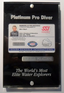 E così arriviamo ai giorni nostri e al riconoscimento "ufficiale" del mio amore per il mare. E' successo che mentre poco più di un anno fa raccoglievo i primi commenti lusinghieri sul mio secondo libro, mi arrivò una strana e-mail proveniente da una certa Shana McCartney, Certifications Department Representative della Scuba Schools International di Fort Collins, Colorado (USA). L'SSI è l'agenzia didattica alla quale sono affiliato da quando ho iniziato ad immergermi, ma questo messaggio mi lasciò molto perlesso. Il testo della mail era questo: «Congratulations! Your application for the Platinum Pro 5000 Diver Award was accepted! I wanted to personally congratulate you as well as inform you of the award ceremony for DEMA. It will be on Thursday, November 3rd at the Convention Center in Orlando Florida, room #N230AB from 6:00 p.m. to 7:30 p.m. I believe invitations are sent to the address on the application. If you cannot attend DEMA the awards will be mailed out to your address after DEMA. Thanks for all you do for the diving industry ». Confesso che lì per lì non diedi molta importanza a questa comunicazione e pensai ad uno scherzo ben confezionato da parte di qualche amico subacqueo. Fu solo quando a gennaio dello scorso anno mi arrivò una mail dell’amico Stefano Stolfa, Training Manager di SSI Italia, che capii che non si trattava di uno scherzo di cattivo gusto. Stefano mi disse semplicemente che all’EUDI Show di Milano (la fiera europea della subacquea che si tiene ogni anno a febbaio), nell’ambito della riunione ufficiale di SSI Italia per la consegna degli "SSI Awards 2011", mi sarebbe stata consegnata di fronte a qualche centinaio di subacquei la card "Platinum Pro 5000 Diver"… il massimo riconoscimento attribuito dall’SSI! |