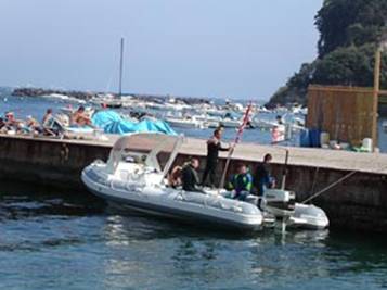Con il magnifico gommone del diving “Napoli Blu” di Filippo, partiamo dal molo di Baia alla volta di Procida, un isola che, per quanto riguarda i suoi fondali, non ha niente da invidiare alla vicina e ben più famosa Ischia.