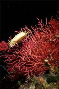 Iniziamo l’immersione facendo subito un salto oltre la cigliata di una parete, che dal pianoro su cui abbiamo gettato l’ancora precipita giù fino a .... non si sa. La caratteristica di questa zona di immersioni, che ricordo bene per essere stato altre volte ad Ischia, è proprio quella di precipitare rapidamente verso quote alle quali non è pensabile arrivare con le attrezzature e gli assetti tradizionali, quote che superano facilmente i 100 metri. L’acqua è di una trasparenza incredibile, o meglio, di una trasparenza tipica delle acque profonde del Golfo di Napoli, che ti fa immaginare di essere sospeso nel vuoto e di planare sopra degli abissi senza fine. Giosuè nuota con minimi movimenti, dimostrando di essere perfettamente a suo agio nel mare che si trova proprio sotto casa sua e mi “tira” verso una direzione che non conosco, lasciandoci la parete sulla destra, in un susseguirsi di splendide gorgonie rosse, sempre più grandi e sempre più cariche di uova di gattuccio, appese come festoni sui loro rami. I colori sono ormai scomparsi: siamo attorno ai 36 metri di profondità e il colore dominante è un grigio azzurrino, che avvolge ogni cosa e fa sì che tutta la parete assuma un aspetto pressoché uniforme, che solo la lama di luce del mio potente illuminatore fa esplodere di colori incredibili quando ci passa sopra: arancione, violetto, rosso, porpora, giallo..... e qui e là le antenne di piccole e timide aragoste, disturbate dalla luce che scava negli anfratti nei quali sono nascoste. |