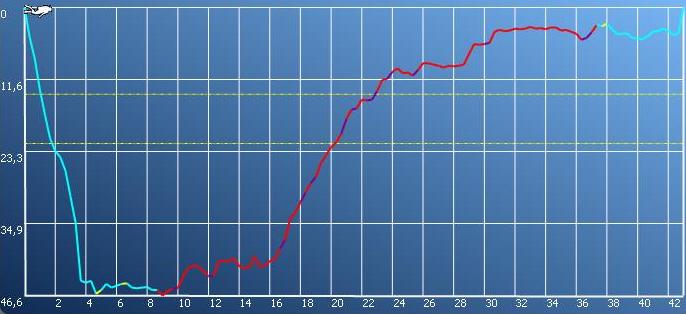 Sopra: il profilo dell'immersione sulla m/n "KENT " |