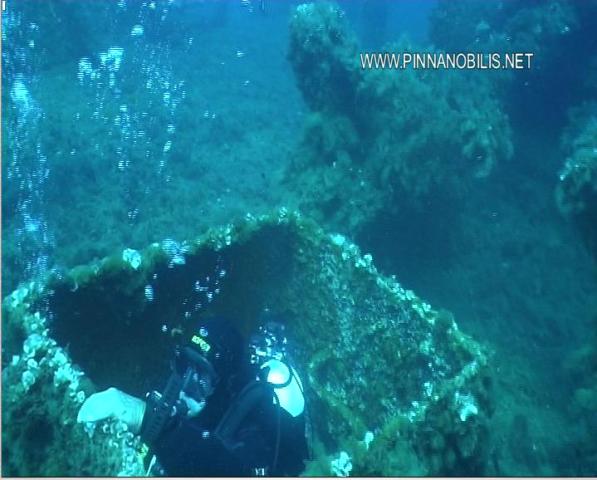 Sotto: galleria di immagini filmate da Mariano del "Pinna Nobilis D.C." durante l'immersione sul relitto del "PAVLOS V" |