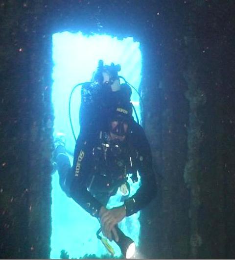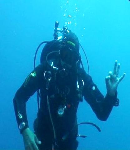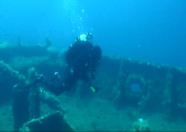 Alcune immagini tratte dal filmato fatto da Mariano durante l'immersione del 1° agosto 2009 che mi ritraggono sul relitto della m/c "PAVLOS V"