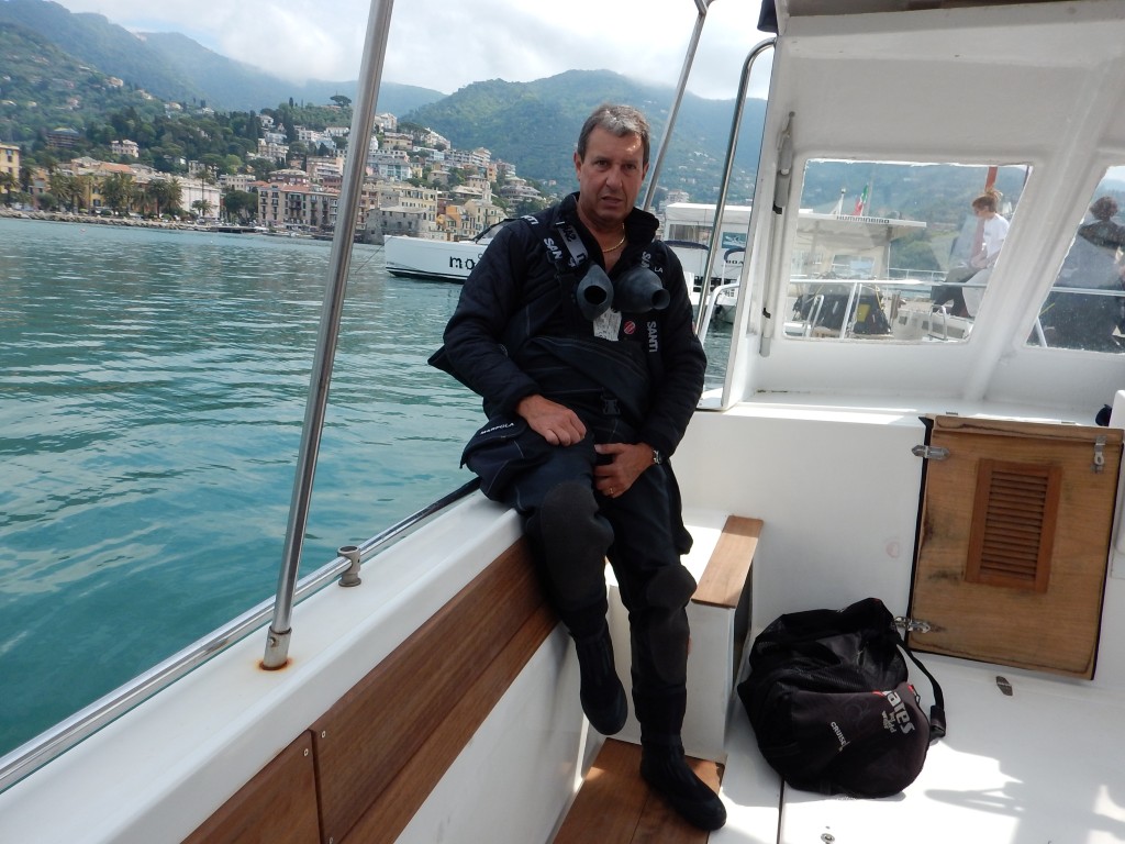 ![]() Guglielmo detto"Gugu", il simpatico ed espertissimo barcaiolo dell'Abyss Diving di Rapallo.