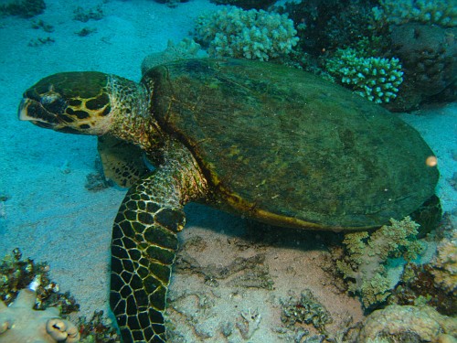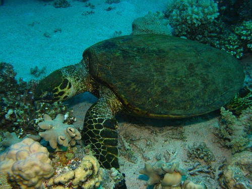 Dopo pranzo proseguiamo la nostra navigazione verso Nord e arriviamo al reef di Shaliniat, dove ci immergiamo verso le 18 dividendoci in due gruppi e, trattandosi di un’immersione molto semplice, senza le guide. Facciamo un’immersione tranquilla, in nitrox, alla profondità massima di 15 metri. Rimaniamo a gironzolare a quella bassa quota per oltre un’ora nuotando intorno al reef da Ovest ad Est e facendo ritorno a nuoto fino alla nostra barca. Oltre al solito coloratissimo pesce di barriera che nuota tra le formazioni madreporiche, l’incontro più interessante è senza dubbio quello con una grossa tartaruga verde, intenta a “brucare” il corallo. Rimaniamo in ginocchio attorno a lei per quasi venti minuti scattando infinite fotografie, poi, lentamente, si allontana da noi nuotando con eleganza e perdendosi nel blu, mentre noi restiamo lì fermi incantati.