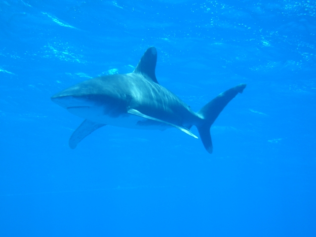E’ strano come in tutto il tempo passato in acqua con i Longimanus non abbia mai avuto l’impressione che ci fosse veramente “pericolo” o che gli squali manifestassero intenzioni aggressive nei nostri confronti. Forse la mia sarà stata incoscienza… sicuramente la mia tranquillità era dovuta a ignoranza e inesperienza. Infatti adesso, a mente fredda non posso fare a meno di ricordare di aver letto che il Longimanus è un Carcarinide di alto mare, un animale “selvatico” che sta al vertice della catena alimentare e che quindi, in situazioni particolari, può anche diventare pericoloso. Questa consapevolezza mi provoca un po’ di inquietudine e, tutto sommato, adesso penso di essere stato molto fortunato nel mio approccio incosciente con questo animale. Durante le mie immersioni in Mar Rosso “in cerca degli squali” mi sono anche reso conto che occorre affrontare queste esperienze con uno stato d’animo adeguato, senza ansie o timori perchè, come tutti gli animali, anche e soprattutto gli squali percepiscono le nostre emozioni; perciò se non ci si sente pronti per affrontare con serenità questo tipo di situazione, penso sia molto meglio… restarsene in barca! |