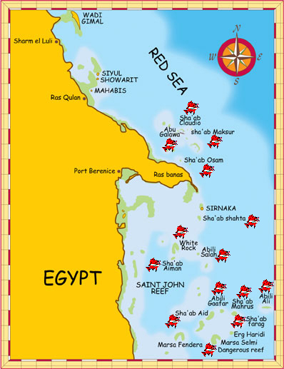 ![]() I punti d'immersione nella zona dei reef di Saint John e a sinistra il m/y "Princess Zeinab" |