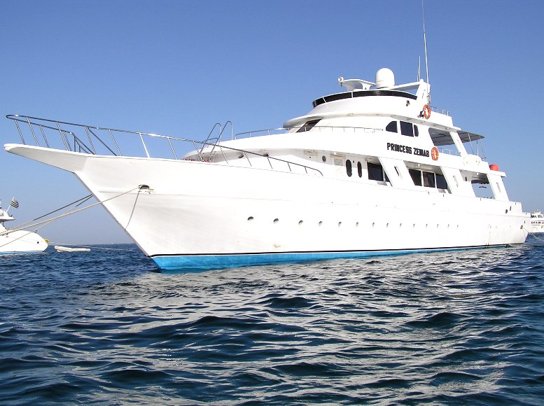 La nostra crociera è partita dal porto vecchio Marsa Alam: in realtà un’insenatura naturale protetta dal reef che si estende poco a Nord di Marsa, senza neanche una banchina per attraccare con la barca… A bordo del bellissimo motor yacht “Princess Zeinab”, una barca di 32 x 7 metri dotata di ogni confort e costruita appositamente per le crociere subacquee, ci siamo imbarcati in 19 subacquei, 11 dei quali appartenenti al G.S.V. - "Gruppo Subacqueo Vicentino" e altri 8, tra i quali io e Angela, imbarcati a coppie alla spicciolata. Nel gruppo c'era una grande prevalenza di veneti e qualche milanese. Siamo arrivati in barca in due riprese. Noi due ed altri 6 sub ci siamo incontrati e conosciuti sul pulmino che dall’aeroporto ci ha portato fino alla barca e siamo arrivati al porto di Marsa Alam alle quattro del pomeriggio, dopo un’ora di viaggio lungo la strada che costeggia il mare e il deserto. Ci siamo subito affiatati, tanto da decidere di autocostituirci in "Gruppo Subacqueo Pulmino" e tale è rimasto il nostro nome durante tutta la crociera. Il gruppo di Vicenza, invece, è arrivato compatto e rumoroso a bordo della “Princess Zeinab” poco dopo la mezzanotte e purtroppo ci ha svegliati da un sonno già parecchio profondo, dato che noi eravamo partiti dall’aeroporto di Bologna alle 6 del mattino e da casa nostra alle 3 di notte! La mattina successiva al nostro arrivo a bordo della “Princess Zeinab”ci siamo incontrati tutti quanti a colazione e abbiamo fatto conoscenza con le nostre due guide sub: l’espertissimo Christoph Donati, proveniente da una nota località di mare: Merano… in Alto Adige (!!) e il giovane e simpatico egiziano Mohammed Antably (detto "Antably"... per non confonderlo con i troppi Mohammed presenti). Finite le presentazioni, ha avuto inizio il nostro bellissimo viaggio verso il sud del Mar Rosso egiziano. Un viaggio davvero indimenticabile! Ed ecco qui di seguito il racconto della nostra crociera, una specie di “diario di bordo” della nostra bellissima avventura in Mar Rosso. |