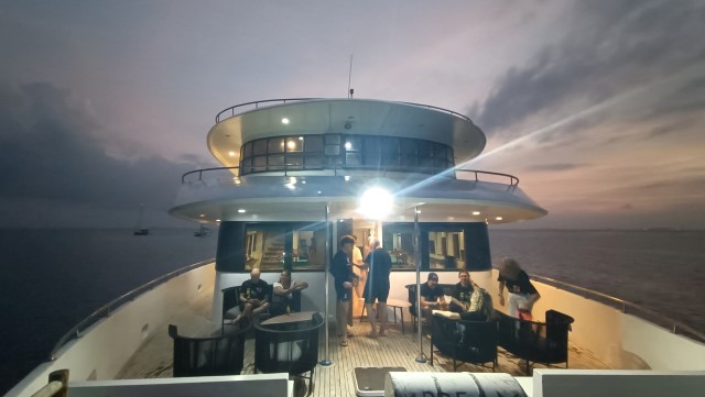 Salto la seconda immersione della giornata a HUKURVELHI BEYRU e in attesa del pranzo, anche se fa caldo, mi concedo un po’ di relax sul ponte superiore della barca. Sono sempre con la muta addosso e non posso tornare a casa dalle Maldive senza un minimo di abbronzatura!