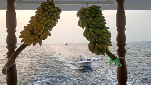 La sera il piccolo motoscafo tender della barca ci porta in due riprese sull'isola di Dhangethi, dove facciamo una cena barbecue. L'efficientissimo equipaggio ha portato a terra tutto il necessario e ha preparato la brace per una bella grigliata. Quando arriviamo troviamo una bella tavola apparecchiata sulla spiaggia e un mucchio di cibo. Per fortuna non c’è solo il pollo! Ci sono salsicce, spiedini di carne e di pesce, pannocchie di mais lessato, braciole di carne... e naturalmente anche pollo, che credo che non vorrò più mangiare per un bel pezzo. L'isola di Dhangethi si trova a 55 miglia a sud-ovest della capitale Malè ed è la terza isola popolata più grande dell'atollo di Alif Dhaal, nell’atollo di Ari Sud. L’isola misura meno di 1 km in lunghezza e appena 300 metri in larghezza e ospita circa 1200 abitanti. È una “local island”, cioè un’isola abitata da maldiviani, ma ci sono anche piccole guesthouse e bed & breakfast per i turisti. Sull’isola ci sono alcuni ristoranti, qualche negozietto e un piccolo porto da cui partono le escursioni giornaliere. Il villaggio ha conservato però la sua anima originaria: stradine di sabbia bianca, la moschea, una scuola, bambini che giocano scalzi. Non ci sono auto, solo biciclette, qualche motorino e carretti elettrici: la vita scorre lenta, scandita dal suono delle onde e dal canto del muezzin al tramonto. |